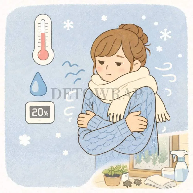ここで大事なのは、湿度が直接“体温(体の中の温度)”を大きく上下させるというより、「皮膚の温度」や「寒い・温かいの感じ方」を揺らしやすい点です。たとえば乾燥した部屋だと、皮膚表面の水分が蒸発しやすくなります。すると蒸発のときに熱が使われるので、肌がひんやり感じやすい。さらに乾燥は喉や鼻の粘膜の水分も奪いやすく、なんとなく不快感や疲れ感につながって、結果として「余計に寒い気がする」と感じることもあります。